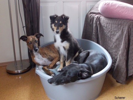 Alina hat sich im neuen Zuhause schnell zurechtgefunden. Sie hat sich rasch mit den Katzen und den beiden anderen Hunden angefreundet.