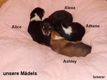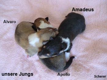Unsere A Wurf war ein sehr einheitlicher, ausgewogener Wurf, alle Welpen entwickelten sich sehr gut. Sie waren alle sehr aktiv, sehr neugierig, total verspielt, aufmerksam, sehr menschenbezogen, unerschrocken und hatten alle riesigen Appetit.