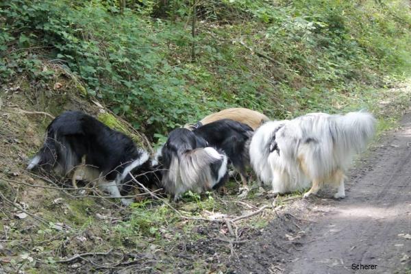 Nachdem sich alle Zweibeiner mit Kaffee und Kuchen gestärkt hatten, erschnüffelten sich die Hunde versteckte Leckerlies.